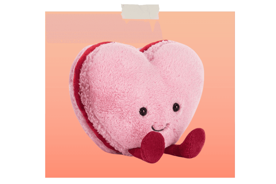 Effet « mooooh » garanti avec cette adorable peluche Jellycat : un macaron en forme de cœur ! Elle s’appelle Arlette…