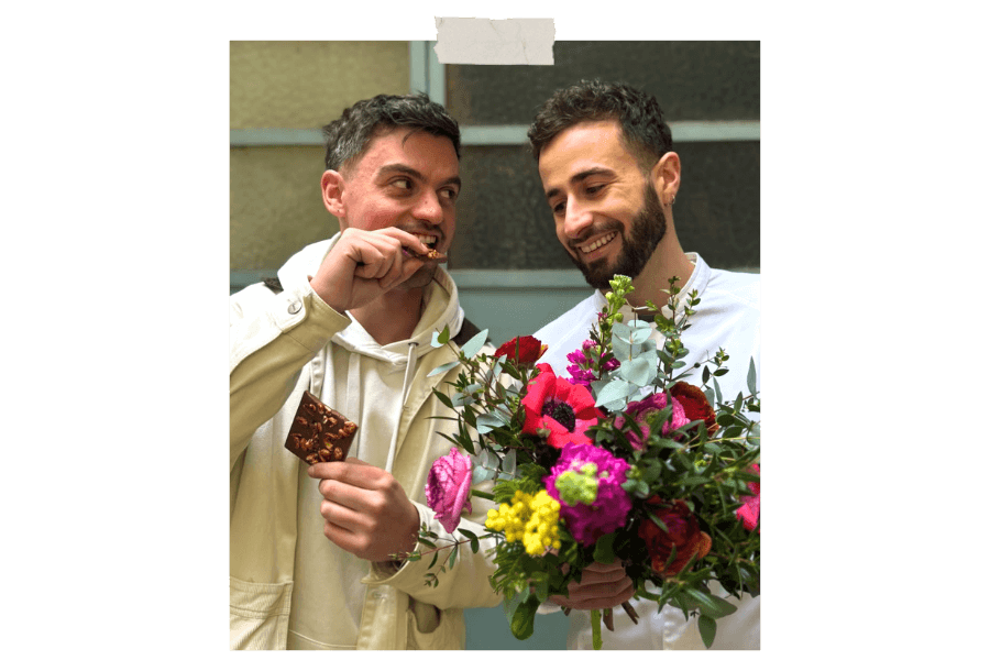 Pour la Saint-Valentin, Les Imparfaits s’associent au talentueux pâtissier lyonnais Mickaël Iachini pour créer le combo parfait : un bouquet surprise de fleurs françaises accompagné de sa tablette de chocolat artisanale ultra gourmande.
